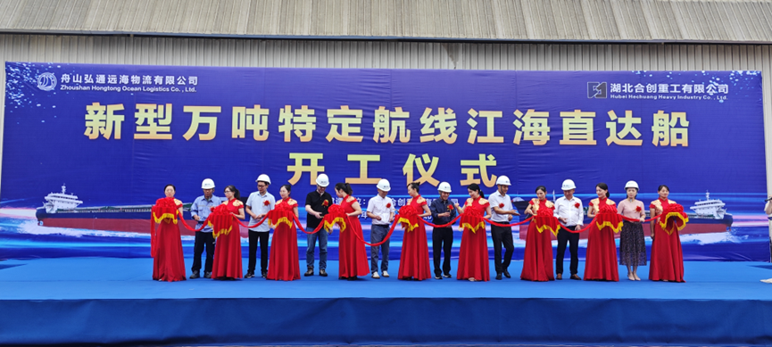 湖北合創(chuàng)重工舉行舟山弘通遠(yuǎn)海物流新型萬噸特定航線江海直達(dá)船船建造開工點(diǎn)火啟動(dòng)儀式。舟山市港航和口岸管理局、舟山弘通航運(yùn)發(fā)展有限公司、湖北合創(chuàng)重工有限公司等主、承、協(xié)辦單位領(lǐng)導(dǎo)、各工程項(xiàng)目單位代表、部門成員共計(jì)50余人參加儀式。